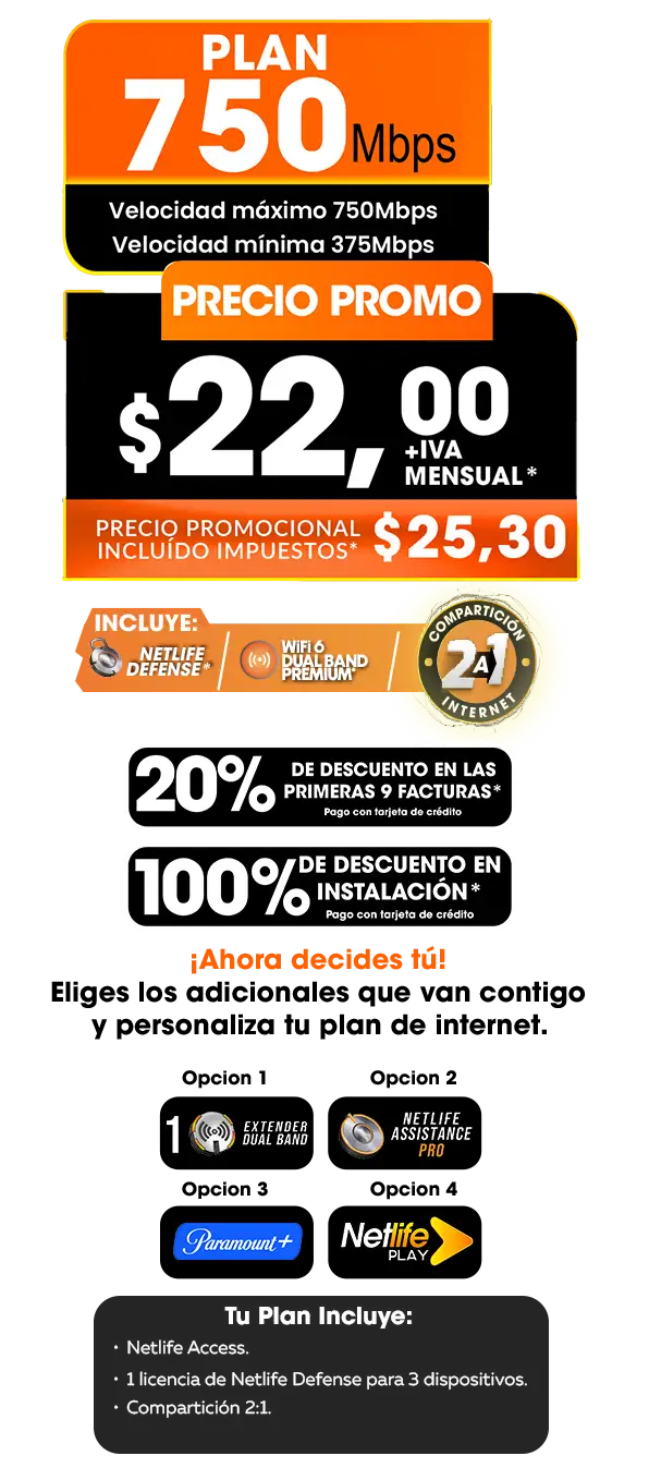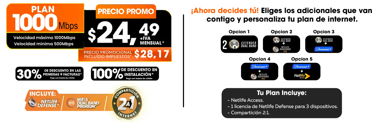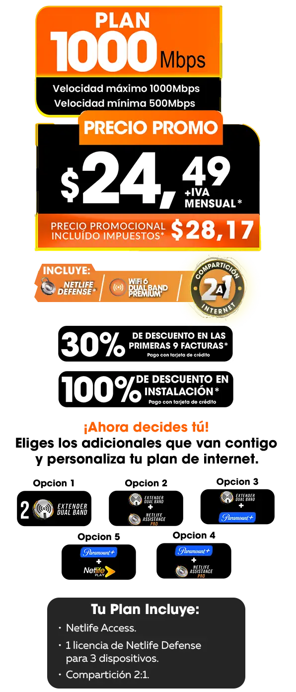 Aplica para los planes con velocidades superiores a 1000 Mbps, es decir, tu velocidad de descarga llega